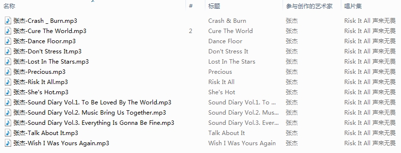 1080盘网_总有一些东西值得分享,喜欢就盘它! » 张杰专辑《Risk It All 声来无畏》13首歌曲合集百度云下载